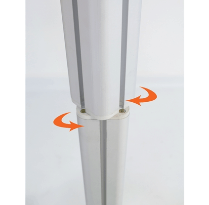 The newest, user-friendly modular display available. Its setup requires absolutely no tools (twist lock version only). A lucid structural design, the parts are made to interlock by simply twisting the ends together by hand. Untwist parts to disassemble. Being toolless also greatly increases the likelihood that this display will be reused, eliminating the problem of having to locate missing screws that may be accidentally lost over time.